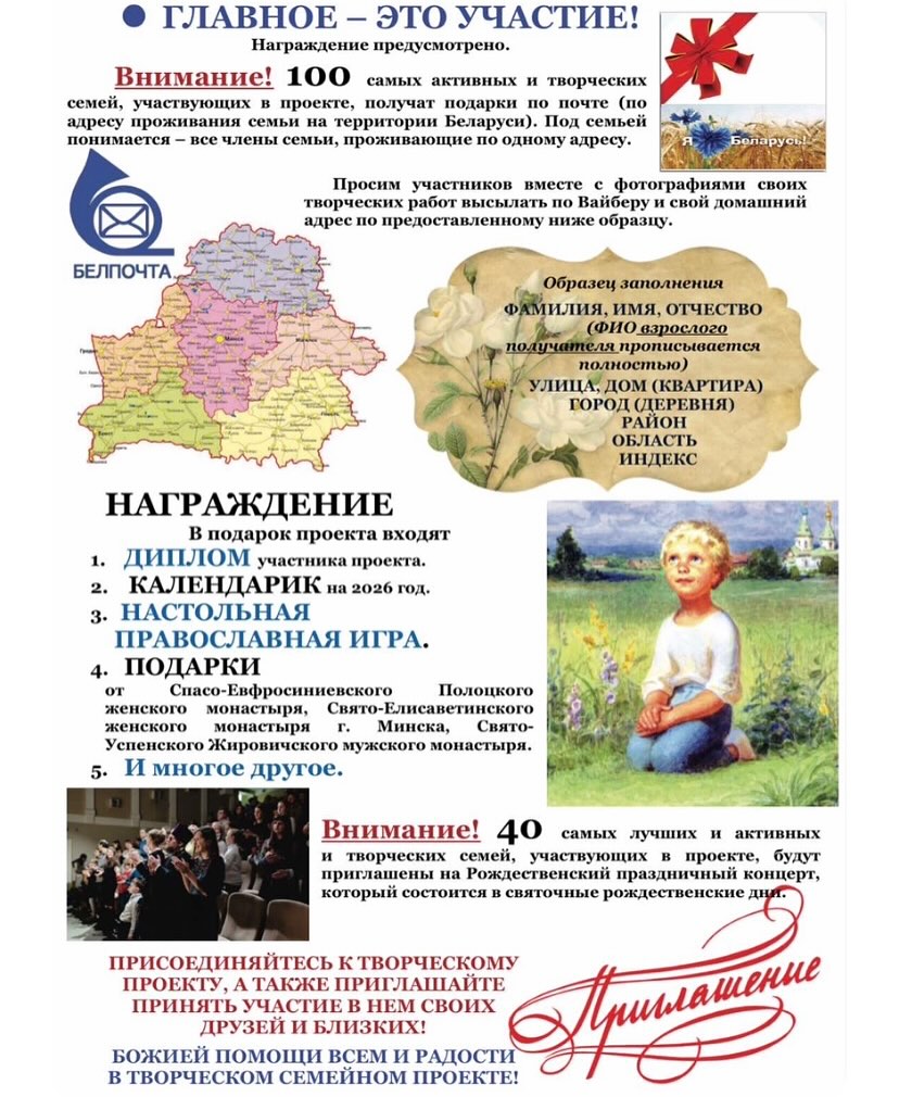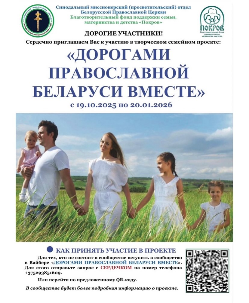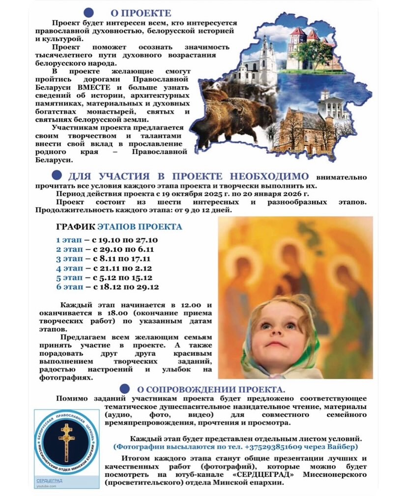 Проект для всех, кто интересуется Православием, белорусской историей и культурой. Участие позволит семьям больше узнать об архитектурных памятниках, духовных богатствах монастырей, святых и святынях белорусской земли.