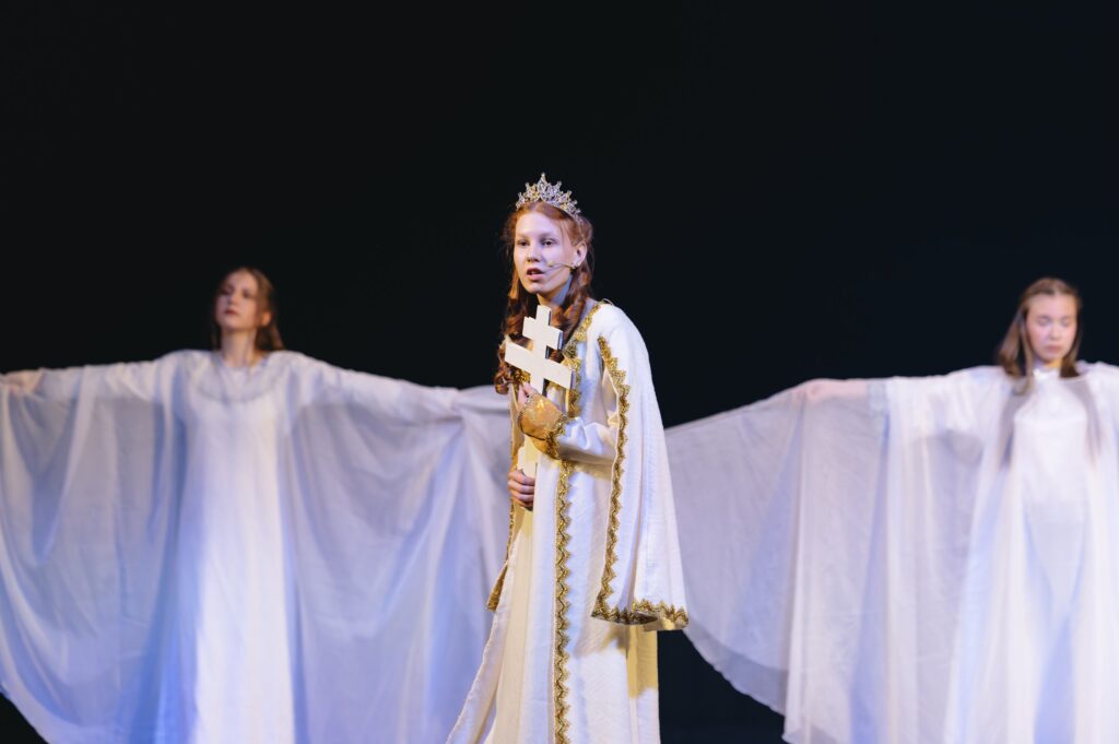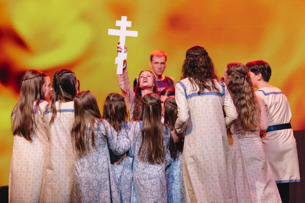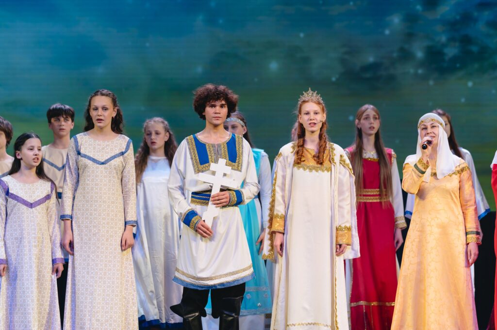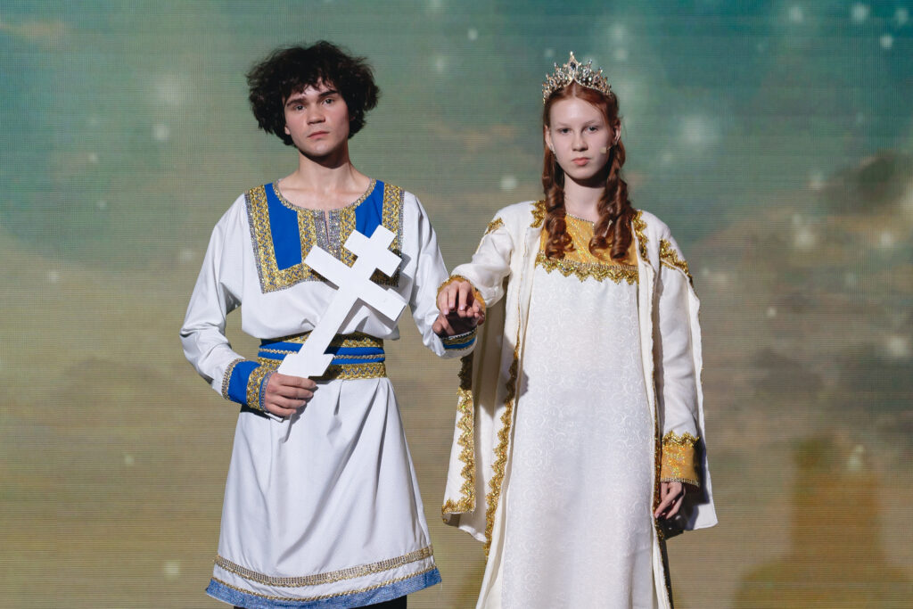 Великолепная режиссерская работа руководителя театральной студии «Благовест» Ольги Матвеевой покорила зрительный зал и перенесла всех присутствующих в эпоху Киевской Руси, раскрывая судьбу великого князя Владимира Святославича. Именно он, после долгих духовных поисков и испытаний, принял крещение и крестил Русь в 988 году, заложив основу православной веры на этих землях.