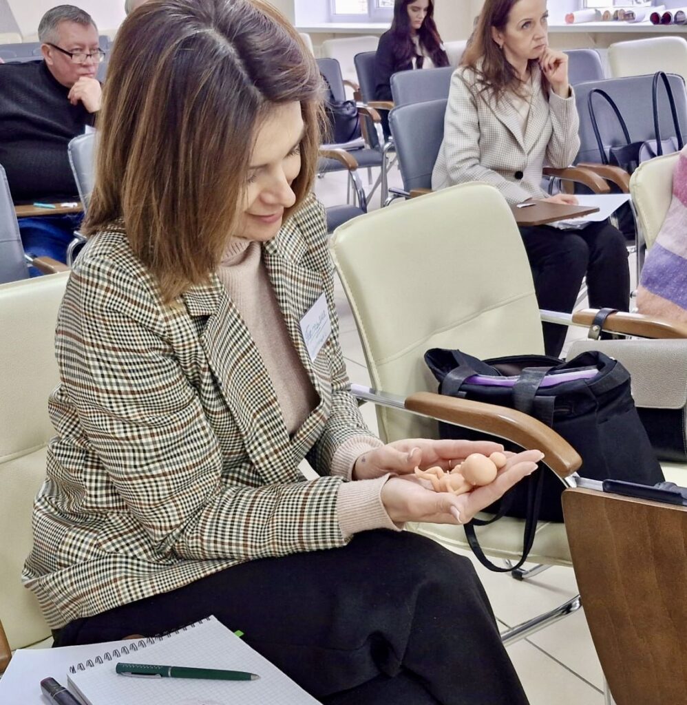 Об этапах внутриутробного развития говорили в ходе третьего блока семинара, а также о том, почему женщине, будущей маме, необходимо беречь свое здоровье. Трогательный и запоминающийся момент: психолог раздала импровизированные сердечки, на которых участники семинара написали свое имя или имя ребенка и прикрепили яблочные зернышки, что соответствует пяти неделям внутриутробного развития эмбриона.